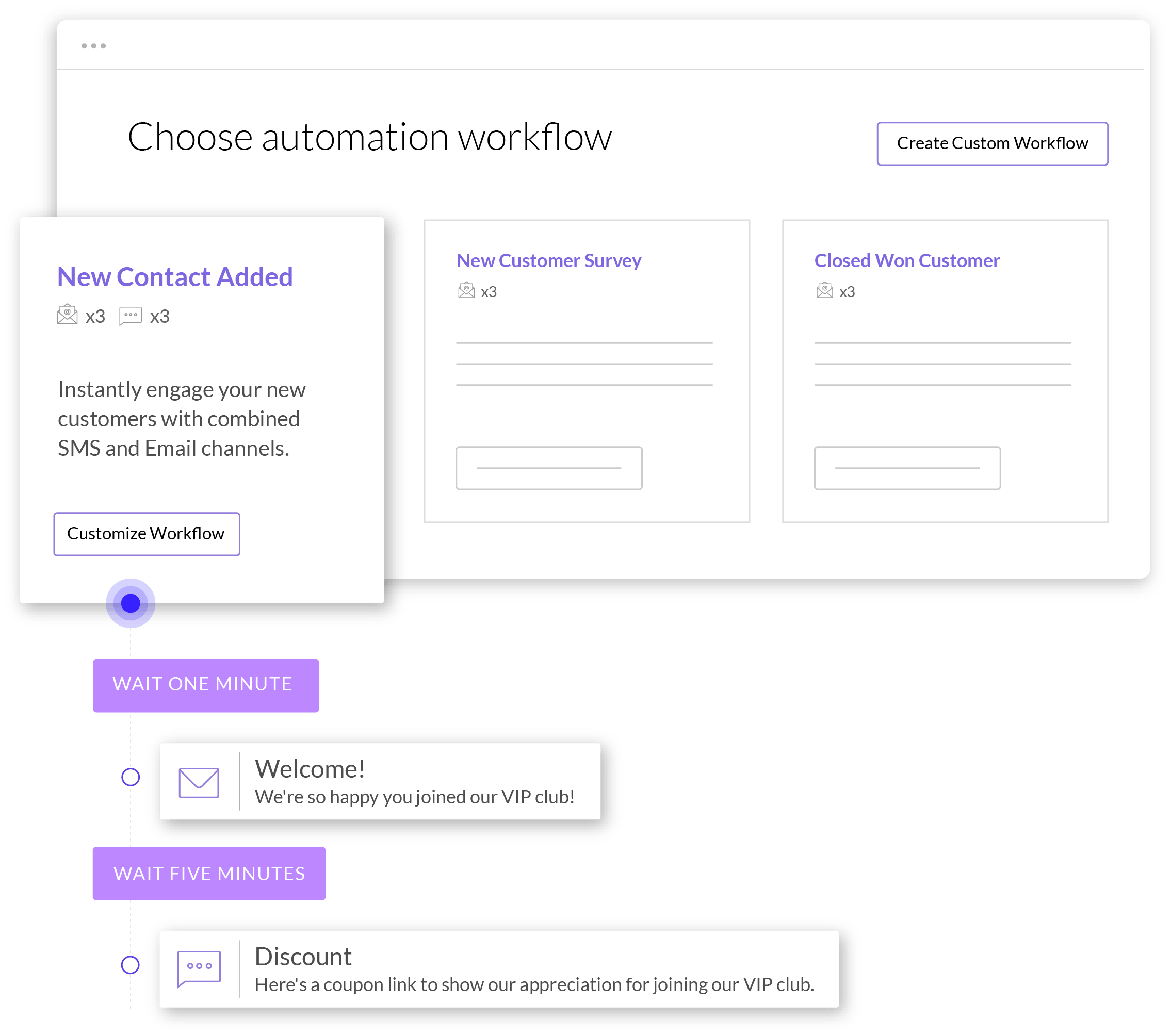 • Personalize your SMS and Email Marketing campaigns with custom workflows